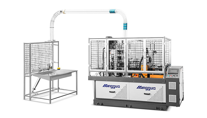 Older paper cup machines relied on three separate turntables. The MG HC600S represents a complete redesign.